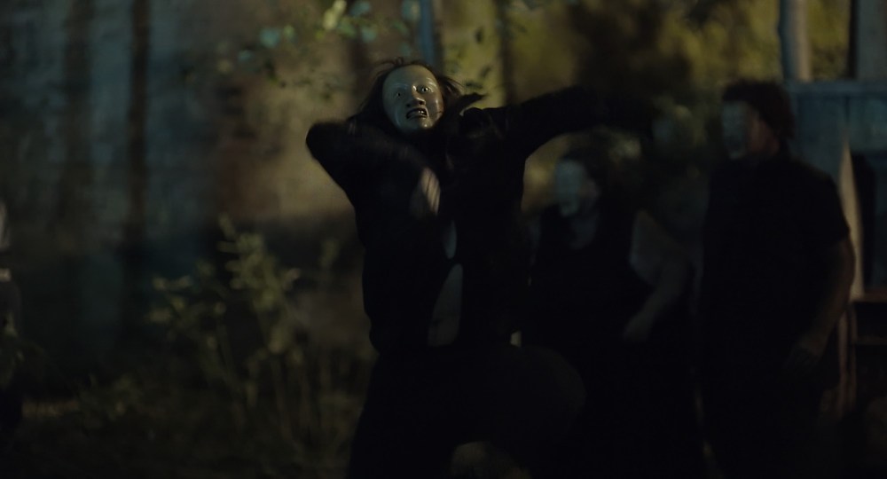 The most important element is without a doubt the masks. They’re yellow-ish, all different and scary like hell. The masks are expertly designed by Kate McConnell and ooze that bizarre and intriguing vibe. Another aspect that makes from this short film a real horror movie is the gloomy and dark cinematography provided by Tom Debenham. Debenham worked alongside director Glazer during the making of “Under the Skin” and also this time their corporation was a success. A lot of smoke and the lack of colours heighten the sinister omen of this film. Because there’s no dialogue in this short film, the sound has a much more important role than in another movie. To say it with a song of the British band Editors, there’s ‘No Sound but the Wind’. We never were more terrified while hearing the wind than we did in this film.