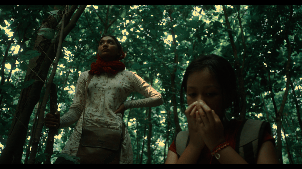 The fear in the eyes of big sister Apu (Sunerah Binte Kamal) looking skyward as the sun sets and telling her little sister Arya to hurry up belied a fear of an apocalyptic onslaught. As the sisters approach the village a warning for everyone to seek shelter under their Moshari’s bellows from a speakerphone.