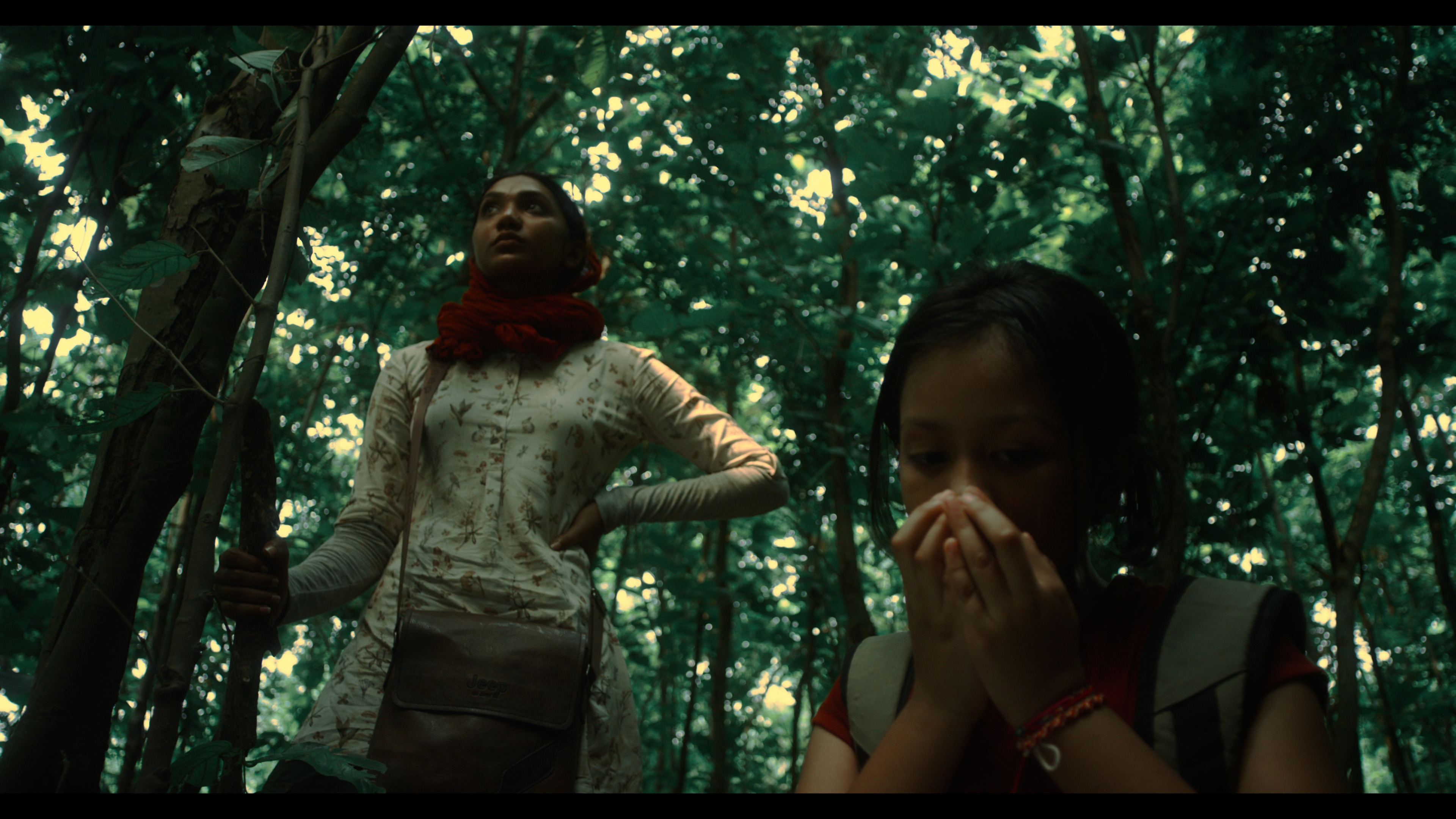 The fear in the eyes of big sister Apu (Sunerah Binte Kamal) looking skyward as the sun sets and telling her little sister Arya to hurry up belied a fear of an apocalyptic onslaught. As the sisters approach the village a warning for everyone to seek shelter under their Moshari’s bellows from a speakerphone.